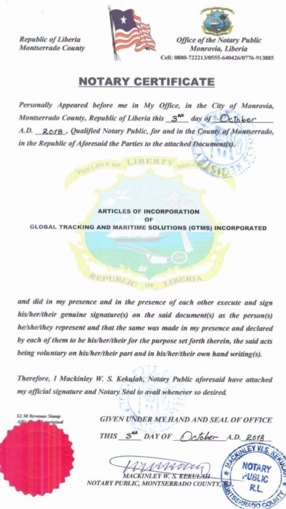 Records show GTMS sealed the CTN Agreement with the Government of Liberia on July 11, 2018, while its official incorporation was only finalized on October 3, 2018 — raising serious questions of fraud and deception.